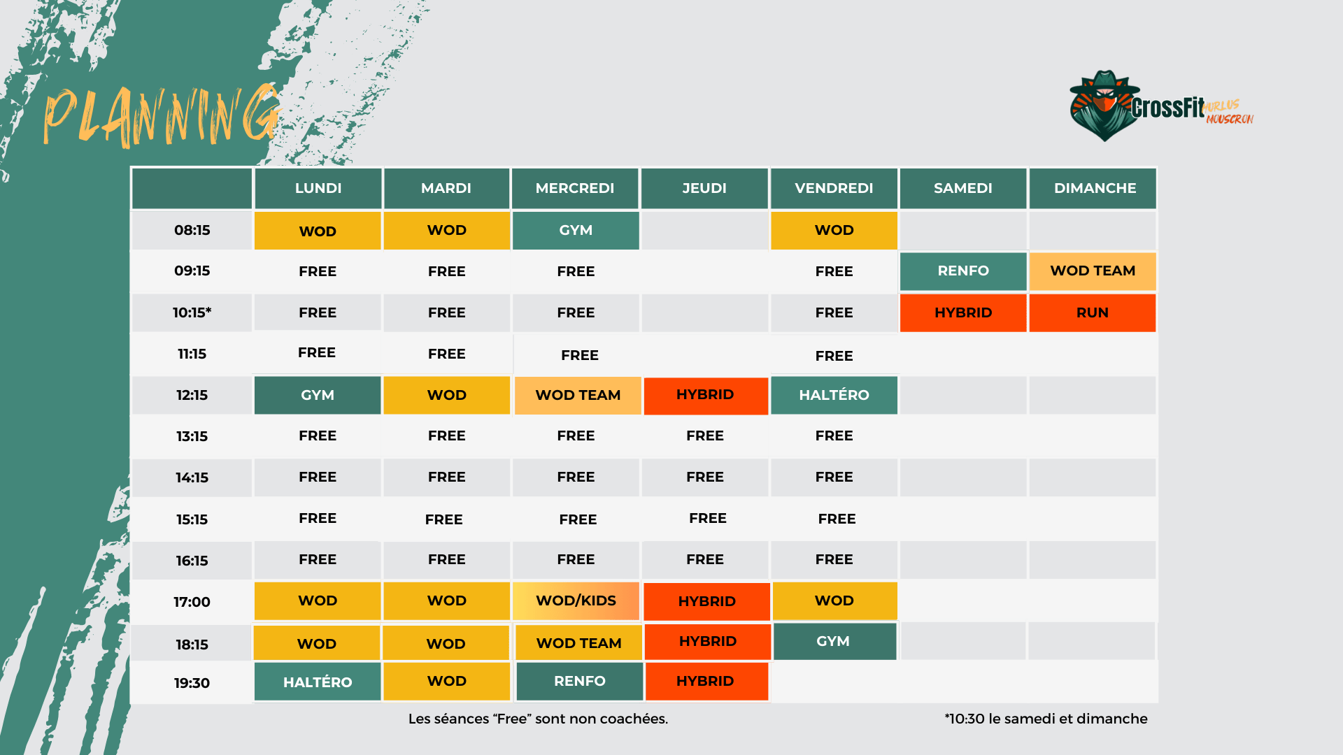 Les séances “WOD” (entraînement du jour/workout of the day) et les cours spécifiques sont encadrés par un coach professionnel. Les places étant limitées, n’oubliez pas de réserver vos séances dans l’application Deciplus ou via ce lien (adhérents uniquement).